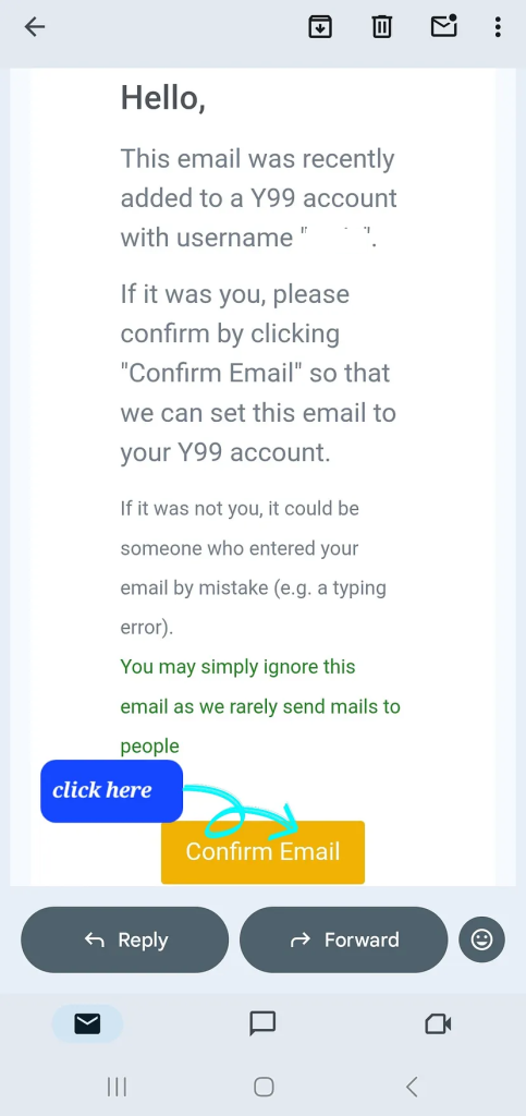 - Check both Inbox and Spam/Junk folders for Y99 confirmation emails.