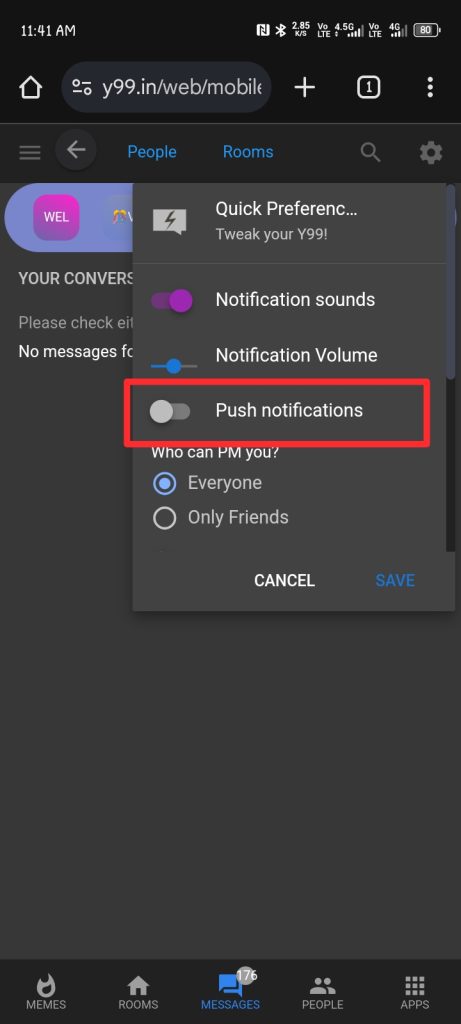 → Now you can turn On/Off your Private Message notifications from here , also can decide who can message you.